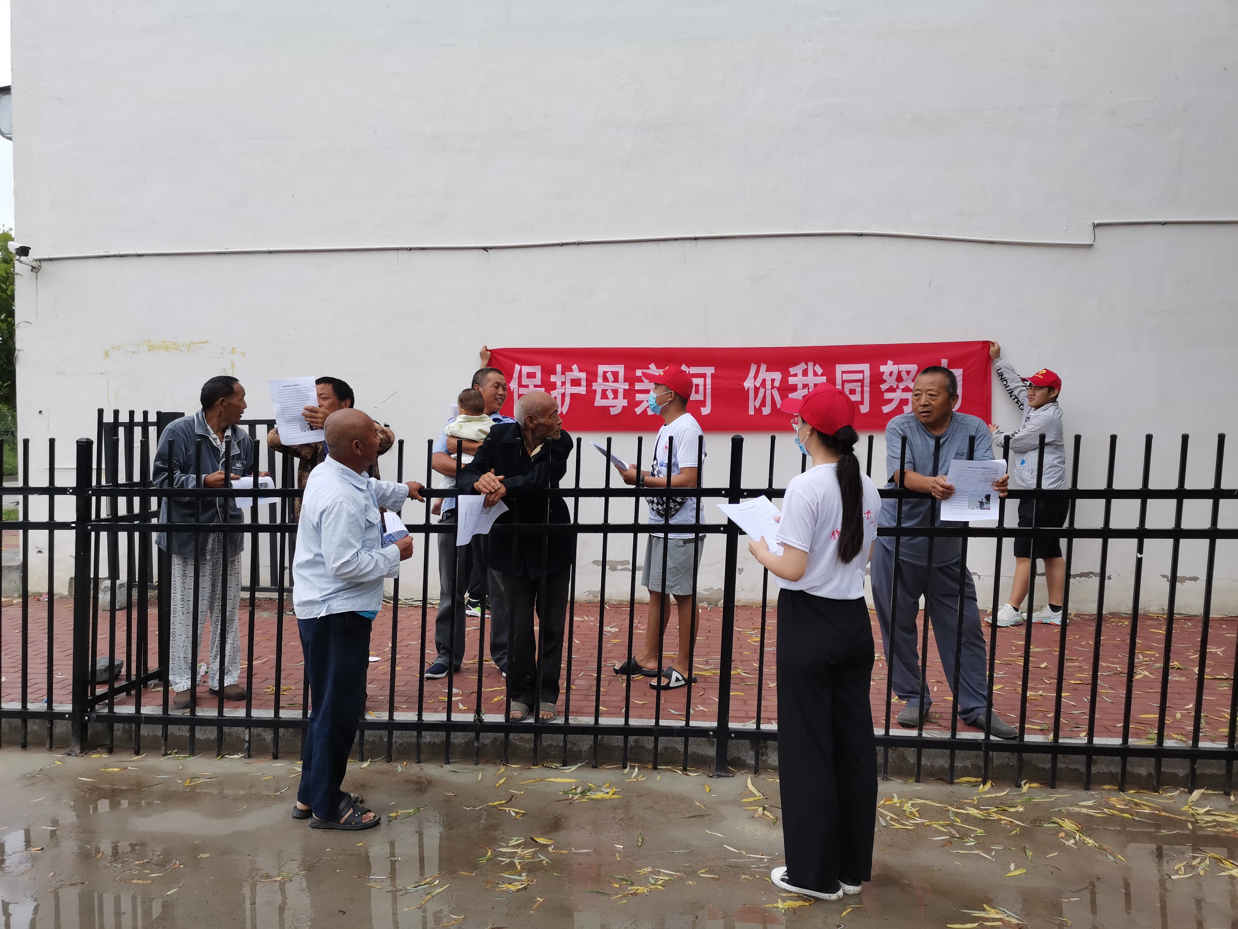 践行生态保护,护卫母亲河。活动中,队员们来到濮阳南小堤引黄闸。在闸口,队员们开展了捡拾垃圾、保护黄河行动,用自己的双手来护卫我们的母亲河。队员们来到黄河滩社区,对社区居民进行了“保护母亲河,你我同努力”知识宣讲,在普及中华母亲河的历史文化和宣传如何保护母亲河的同时,提醒当地居民不要到黄河危险区域游玩,更不要下河游泳、捕鱼,共同努力保护母亲河。