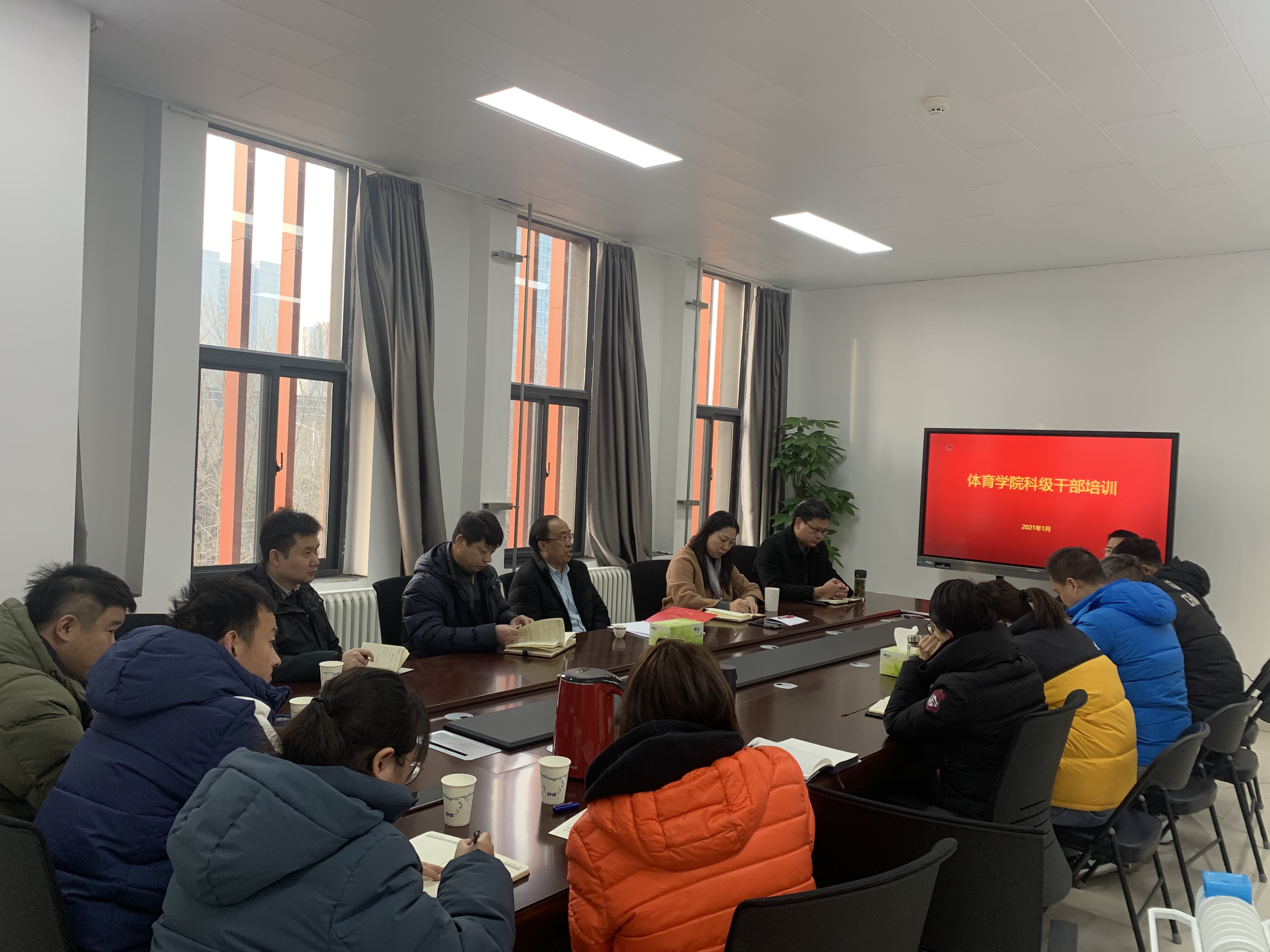 为进一步提升基层干部业务水平,助力学院“十四五”发展,1月20日,体育学院在科学校区体育馆党员活动室开展了科级干部培训活动。学院全体领导班子成员、副科级以上干部及各基层党支部支委参加了本次培训。