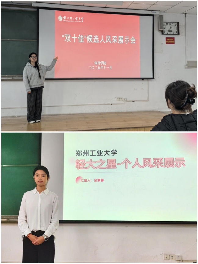 为发挥榜样人物的示范引领作用,激励学生立志成才全面发展,近日,体育学院在科学校区三教楼103室举办2025年度十佳“轻大之星”、十佳“自强之星”院级候选人风采展示会,学院辅导员及学生代表参加活动。