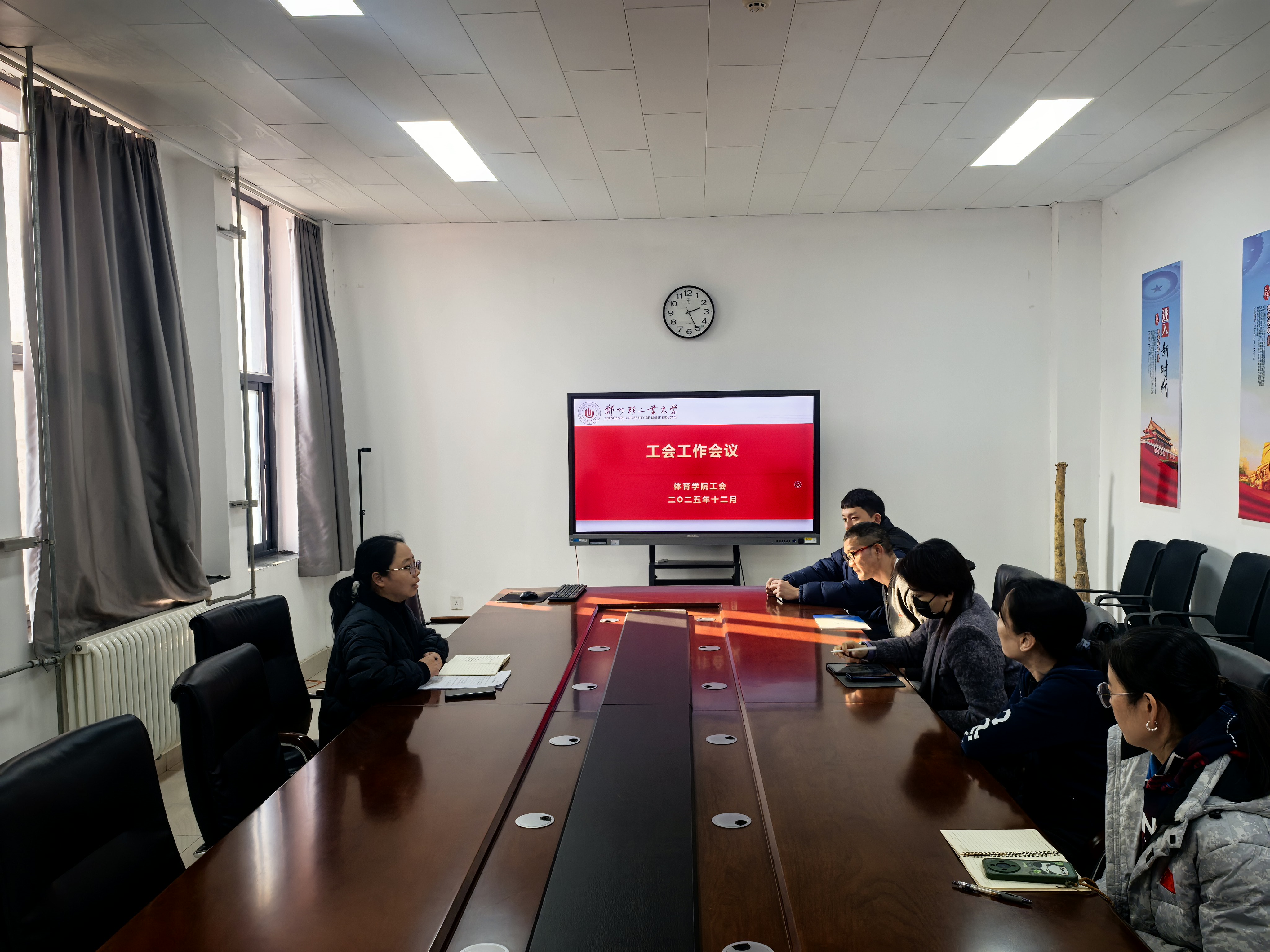12月18日中午,体育学院在学院楼304室召开工会工作会议。全体工会委员参加,会议由工会主席王静主持。