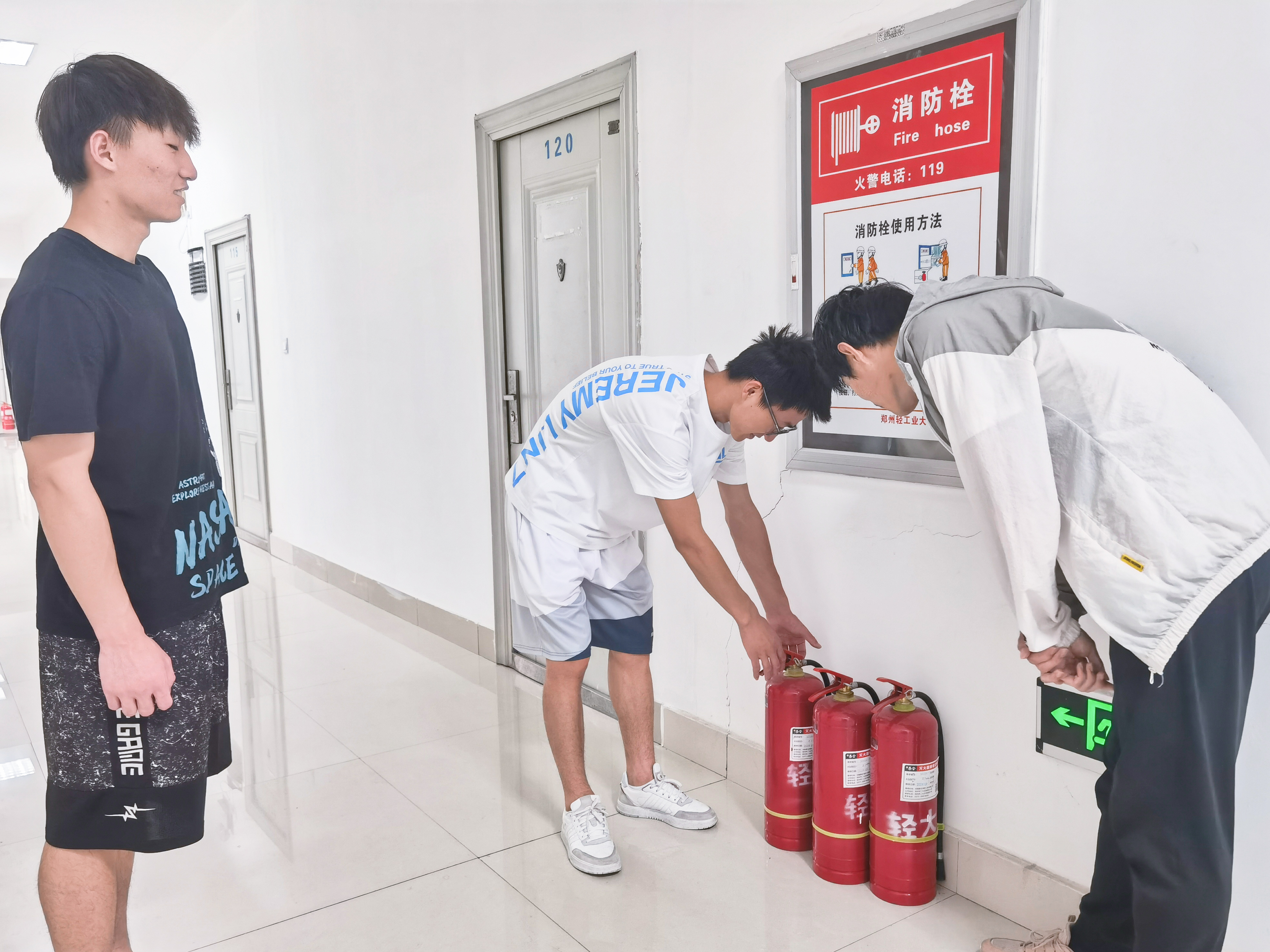 活动中,各年级辅导员老师结合消防安全制度以及各类火灾案例,对如何树立公共消防意识、个人面对突发火灾事故应如何进行救灾及逃生等方面进行了全面的培训, 同时也对各种消防器具的使用方法做了详细讲解。接着,老师提出了实际生活中可能存在的安全隐患,让同学们结合自身经历与思考,谈谈这些隐患会带来哪些不力之处,以及应该采取哪些措施,从而提高同学们的安全防范意识。最后,各班学生干部带领同学们走进校园,对各种消防标识及器具进行实地学习。