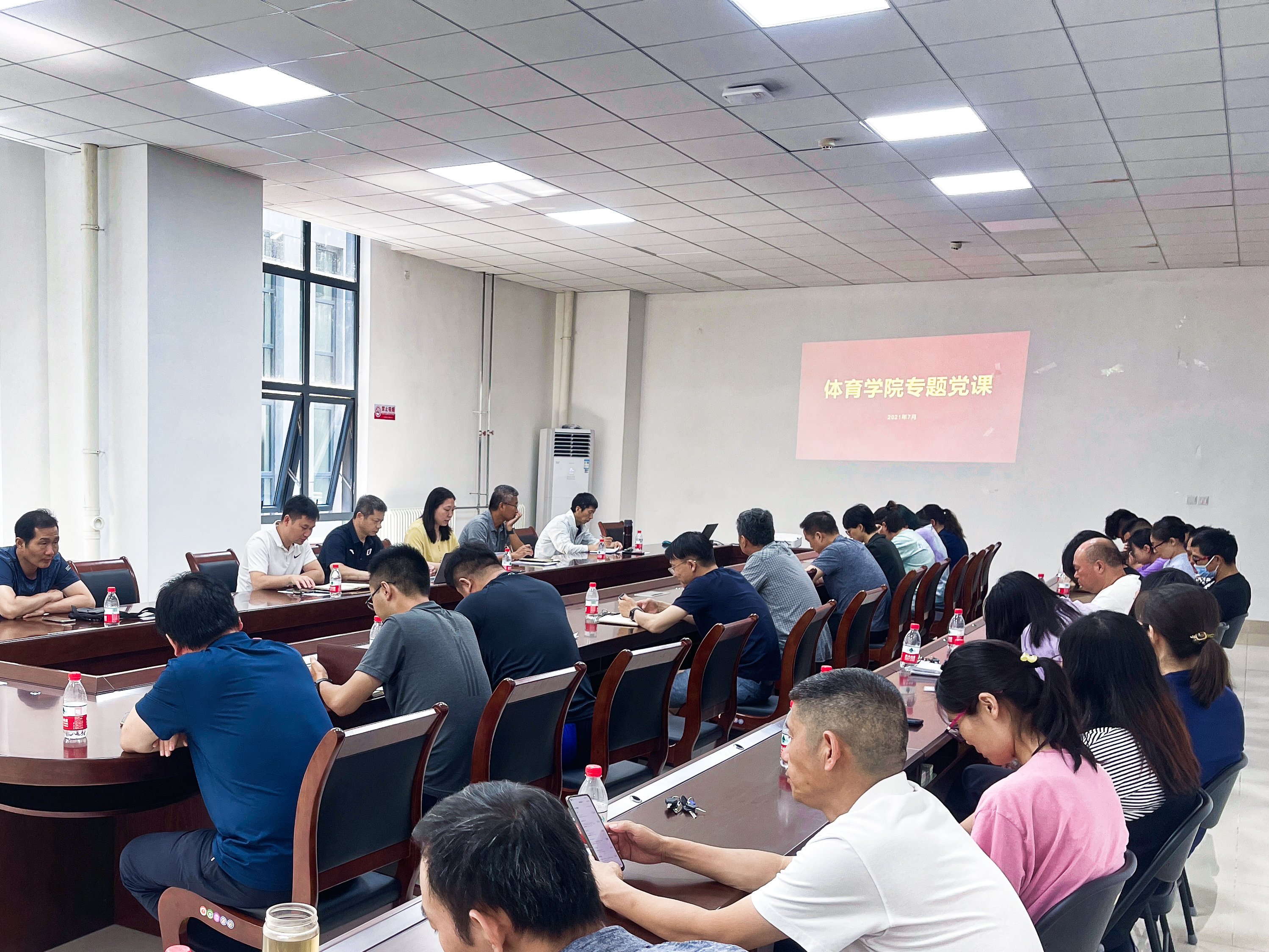 为扎实推进党史学习教育,强化教职工政治理论学习,7月8日,体育学院党总支书记张根清在科学校区体育馆会议室为全体教师讲授党史学习教育专题党课。