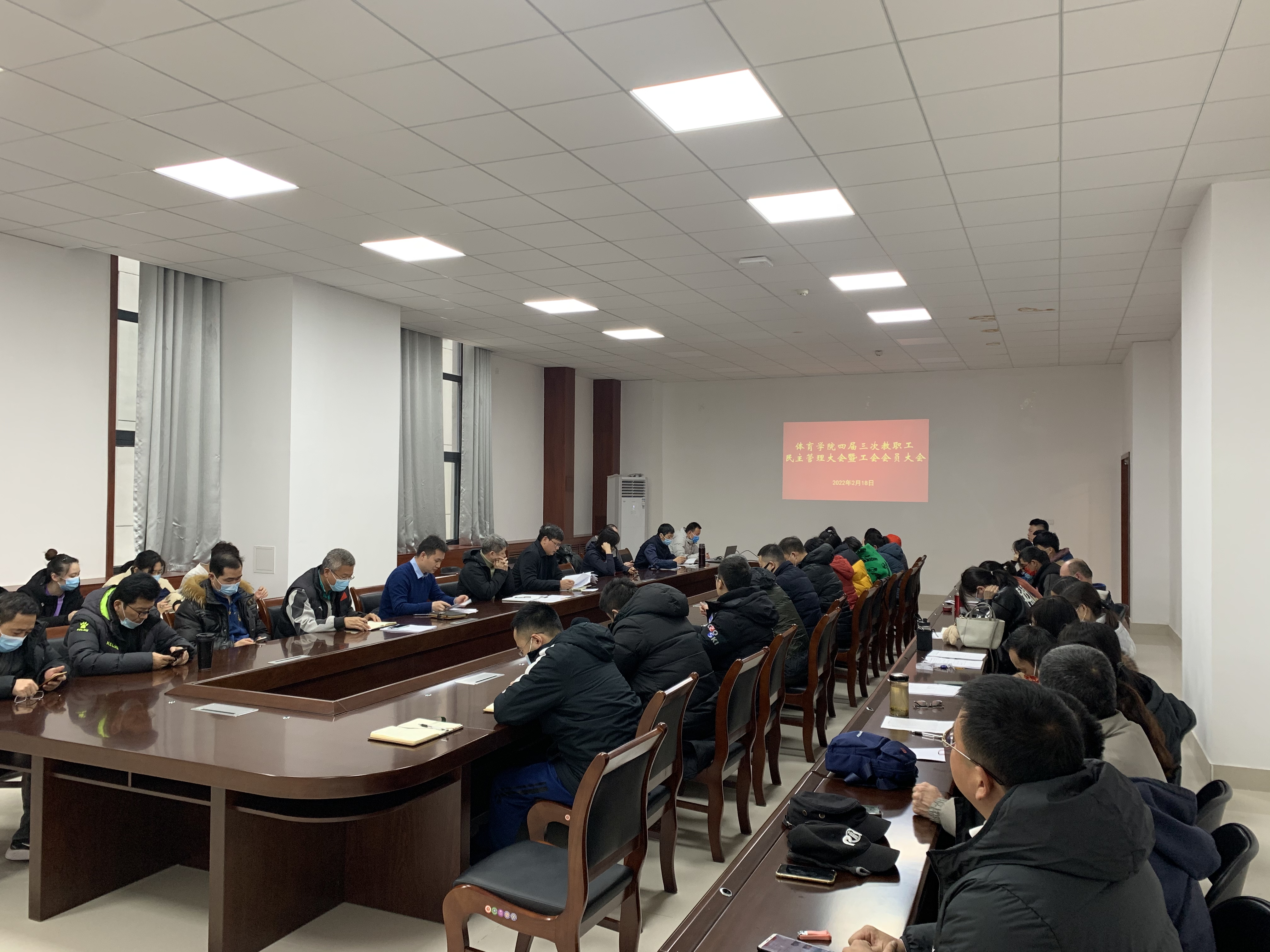 2月18日下午,体育学院在科学校区体育馆会议室召开四届三次教职工民主管理大会暨工会会员大会,学院全体教职工参加大会。会议由学院工会主席谭俊超主持。