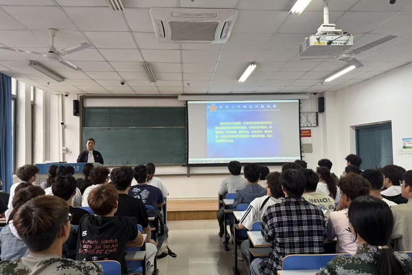 郝老师从参军的基本条件说起,阐述了身高、体重、视力等身体指标以及政治审查的严格标准,详细介绍了网上报名、初审初检到体检政审到批准入伍具体流程,让新生对参军门槛有了清晰认知。在优惠政策方面,郝老师着重强调经济补助、学业保障和就业扶持等内容,让新生明白参军入伍既能为国奉献,又能收获个人发展的实惠。她还深入剖析了参军入伍的时代意义,鼓励同学们将爱国情怀转化为实际行动,投身军旅,在部队中锻炼自己、成就自己。