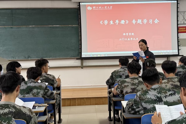 为助力2025级新生快速适应大学生活,全面掌握学校规章制度,体育学院于近日组织开展了《学生手册》集体学习活动,覆盖整个年级新生。