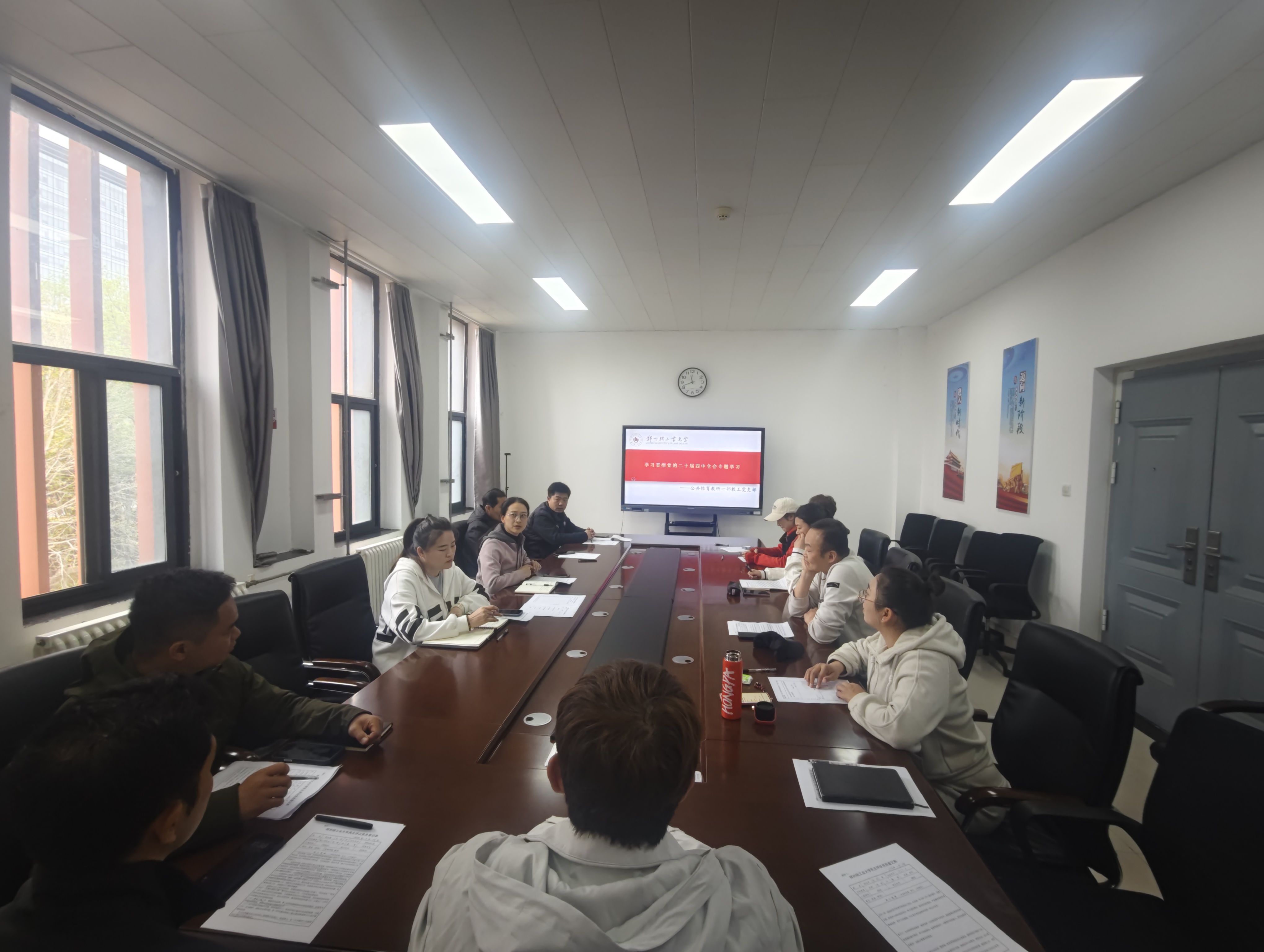 为深入学习贯彻党的二十届四中全会精神,精准把握“十五五”时期发展蓝图与战略部署,3月26日上午,公共体育教研一部教工党支部在学院会议室召开学习贯彻党的二十届四中全会专题学习会,组织全体党员集中学习《“十五五”时期经济社会发展的指导思想、重大原则和根本保证》《“十五五”时期经济社会发展的重大战略任务》两门专题课程。会议由支部书记杨莹莹主持,支部全体党员参加。